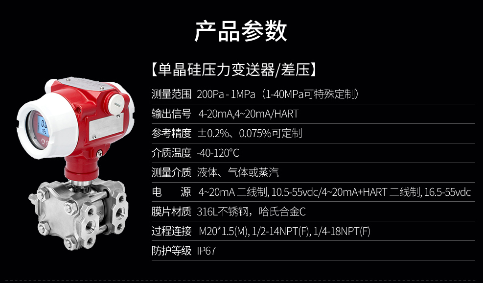 SIN-P2051G差壓安裝式表壓/絕壓變送器用于測量液體、氣體或蒸汽的液位、密度、壓力,然后將其轉變成4~20mADC HART電流信號輸出。采用先進的高精度單晶硅技術,測量精度高達0.075級,特有的雙過載保護膜設計,單向過壓高達10MPa