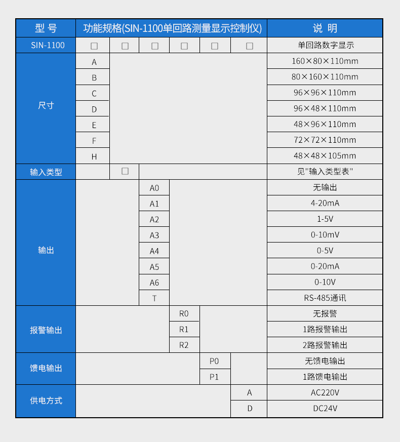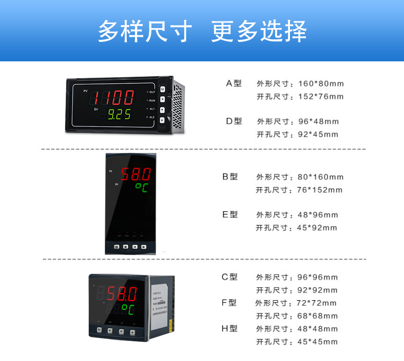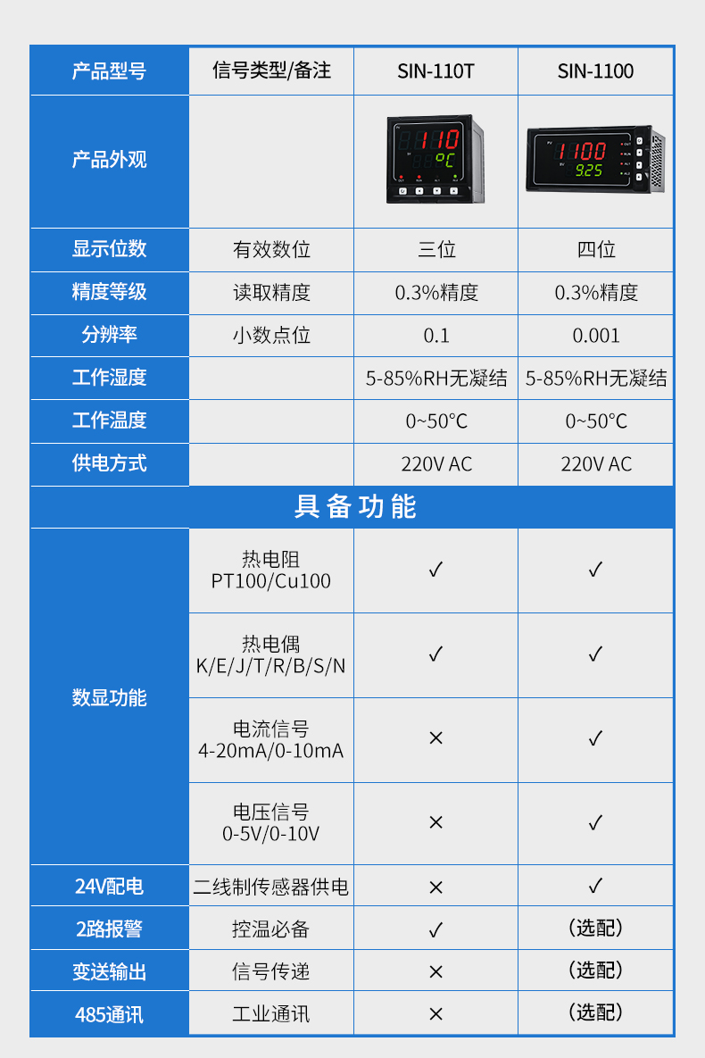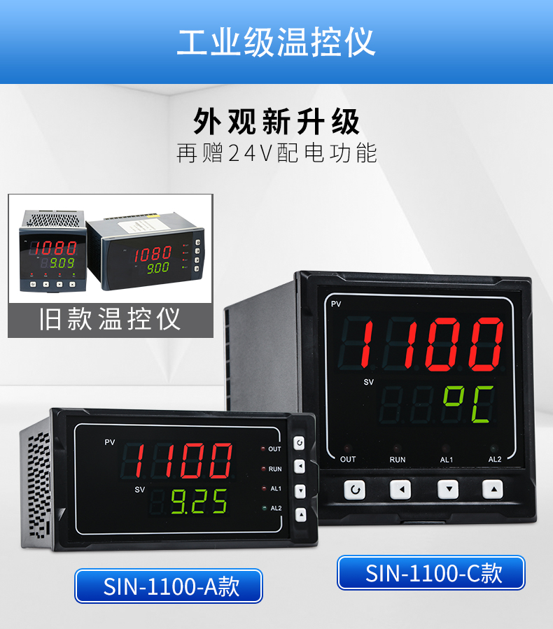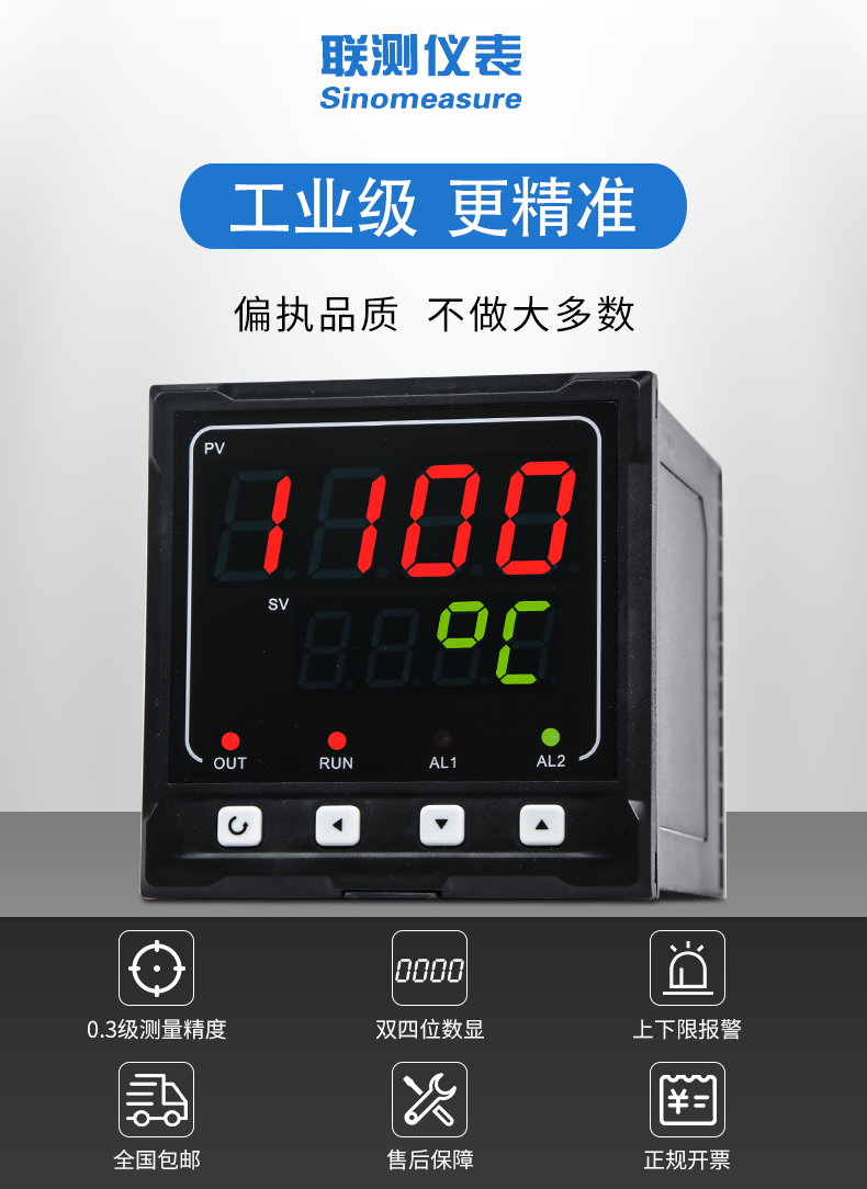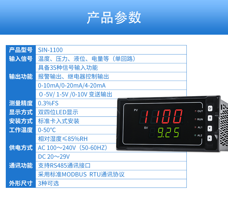 聯測SIN-1100數顯表(簡易型),傻瓜式操作,0.3級測量精度,7款外型尺寸,雙四位LED顯示,可支持熱電偶、熱電阻、電壓(可開方運算)