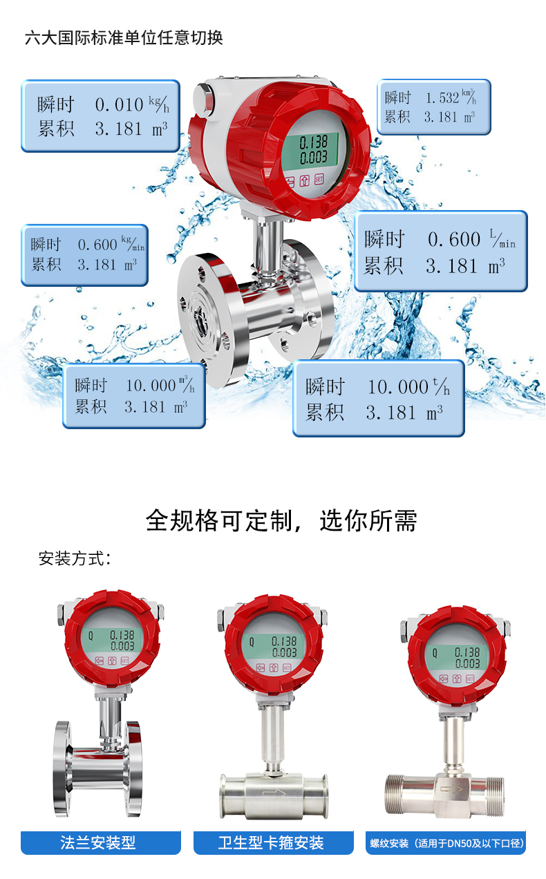 聯測_LWGY-SIN新款液體渦輪流量計 智能 測水/油/純水 水流量計