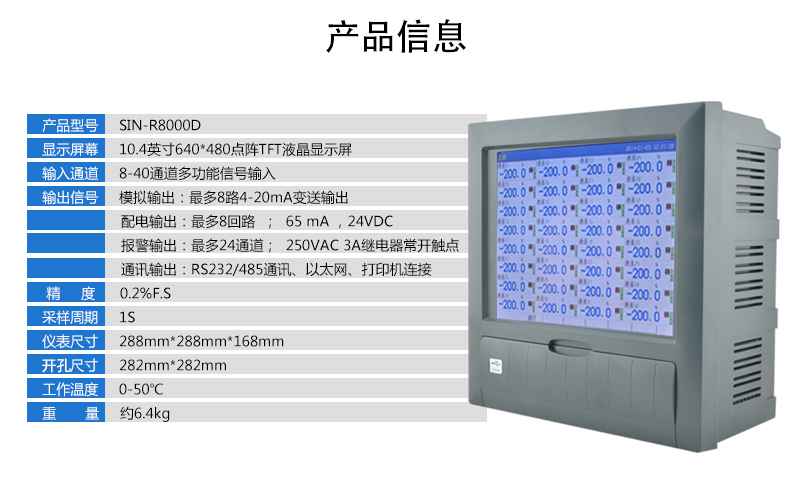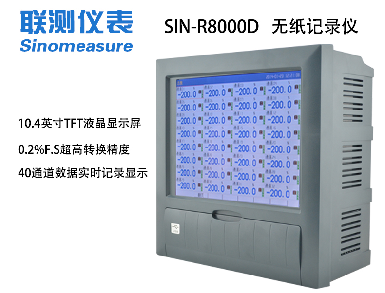 聯測_SIN-R8000D_1-40路可選_10.4英寸彩屏_無紙記錄儀_溫度_壓力_多種參數